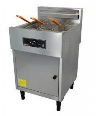Fritadeira elétrica de alto rendimento, fabricada em aço inox com 2 cestos de fritura e 1 cuba para 20 Litros óleo com zona fria; Resistencia blindada; Termostato de segurança; Controle automático da temperatura; Fritadeira elétrica utilizada em cozinha profissional, restaurante, hamburgueria e loja de fast food, para fritar alimentos refrigerados e congelados, que necessitam de padronização; Tensão 220/380v Trifásico; Válvula  dreno Ø1"; Potência 18.000w; Preço de fritadeira elétrica direto da fábrica.
