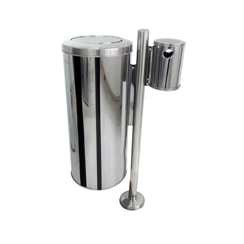 Lixeira Urbana Aço Inox com Coletor de Cigarros