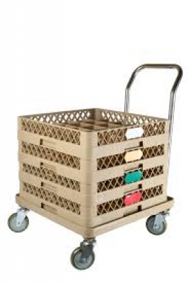 Carrinho para gaveta rack de máquinas para lavar louças industrial, produzido em polipropileno de alta resistência mecânica com 4 rodízios giratórios; Utilizado no acondicionamento e deslocamento de rack de lavar louças em corredores e elevadores de cozinhas industriais e áreas de lavagem em restaurantes de hotéis, bares, hospitais, industrias e redes fast foods; Evita acidentes e quebras dos utensílios e louças; Transporta até 12 gavetas para lavar louças com ou sem os utensílios; Capacidade para 150 Kg; Preço de carrinho para rack de maquinas de lavar louças direto da fábrica.
