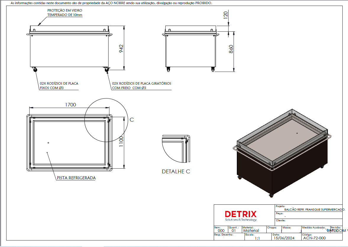 ✔ Rodízios Ø 3” fixos e giratórios com freios.