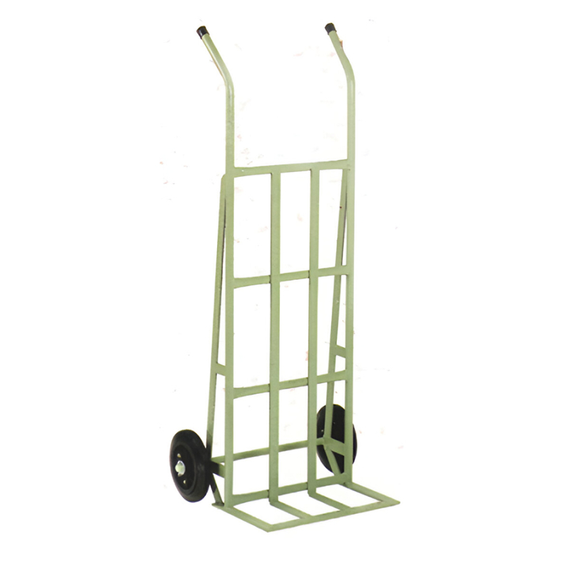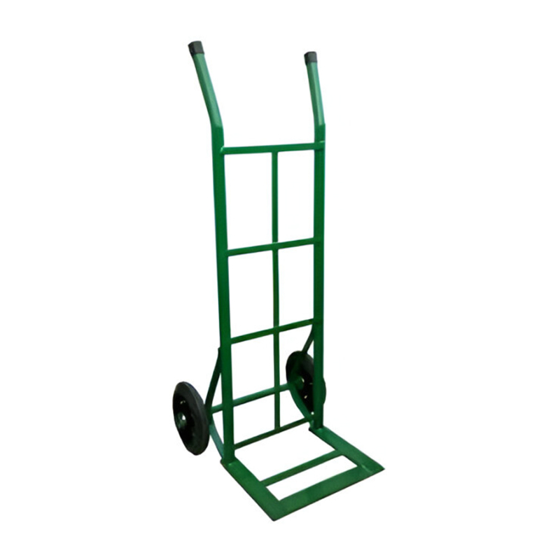 Carrinho para transportar blocos de concreto e paletes, com capacidade de carga de até 350 Kg. Fabricado em aço carbono tubular, possui 2 garfos para fácil encaixe, punhos reforçados e acabamento em pintura epóxi, disponível nas cores verde, azul, cinza, vermelho, laranja ou preto. Equipado com 2 rodas maciças (não furam), para terrenos planos, lisos, firmes, ambientes internos em galpões e armazéns e locais com detritos pontiagudos que podem furar um pneu comum. Utilizado como carro porta blocos de concreto pelos furos e como carro porta paletes para mover caixas com cerâmicas e sacos de cimento em indústrias e construção civil.