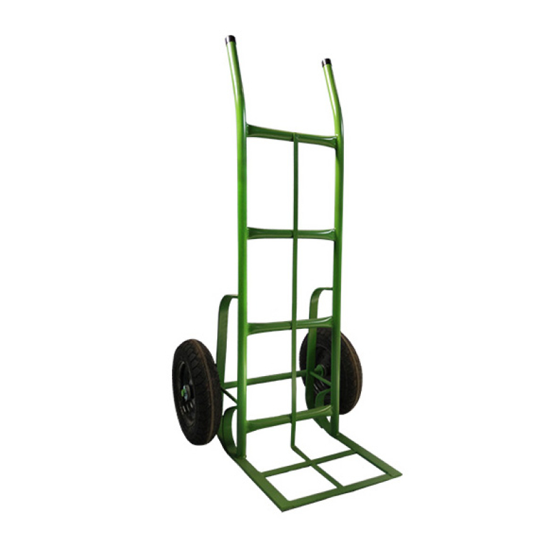 Carrinho para transporte de sacarias com capacidade de carga de até 350 kg. Fabricado em aço carbono tubular de alta resistência, com acabamento em pintura epóxi. Equipado com 2 rodas pneumáticas de 4 lonas, o carrinho oferece manobrabilidade suave, alta estabilidade e facilidade de uso, mesmo em pisos irregulares. Utilizado para transporte de saciarias em geral em ruas, calçadas e áreas de armazenagens em indústrias, lojas, supermercados e no apoio para cargas e descargas em caminhão, furgão ou pick-up.