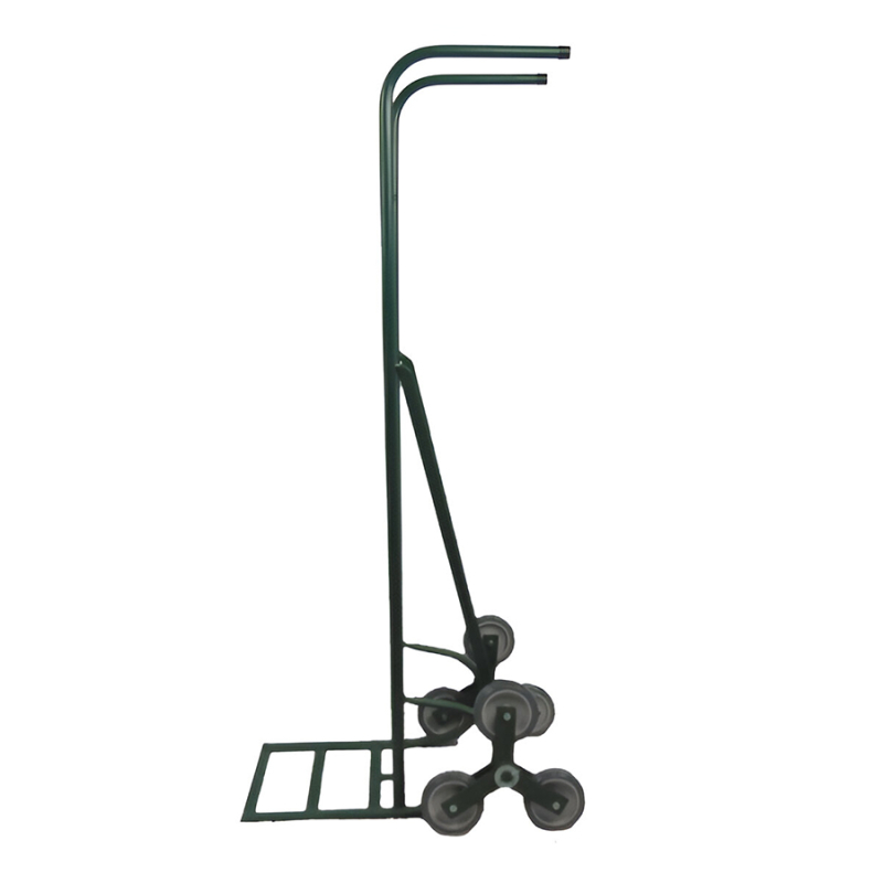 Carrinho de transporte para subir escadas e degraus com capacidade de carga de até 250 kg. Fabricado em aço carbono tubular, o carrinho possui aba de 280 mm e acabamento em pintura epóxi. Seu grande diferencial está no sistema de movimentação: são 6 rodas de 5 polegadas montadas em eixo fixo no formato estrela, que facilitam a subida e descida de escadas, além de proporcionar maior estabilidade, resistência e manobrabilidade em diversos tipos de pisos. Utilizado para subir degraus de escadas no transporte de caixas e cargas em geral em indústrias, bares, restaurantes, padarias, cozinhas, hotéis, supermercados e hospitais.