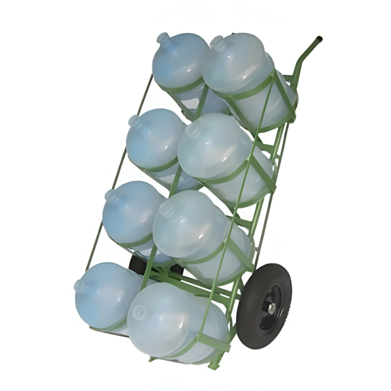 Carrinho para transporte de galões de água, desenvolvido para garantir segurança e agilidade na movimentação de galões de 20 litros de água. Produzido em aço carbono tubular de alta resistência, o carrinho conta com 2 punhos ergonômicos, que facilita a condução, e encaixe para 8 galões, proporcionando apoio firme e seguro. O acabamento em pintura epóxi aumenta a proteção contra corrosão e desgaste. O sistema de locomoção é composto por 2 rodas de 9″. Utilizado para transporte de galões de agua para abastecer residências, industrias, escritórios, hospitais, condomínios, restaurantes, hotéis e locais púbicos.