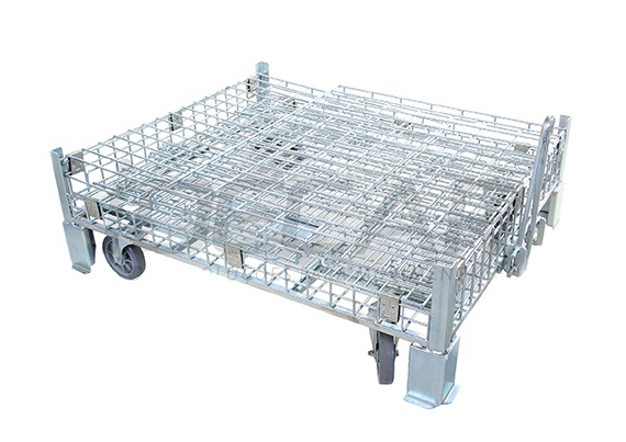 Container aramado com rodas e engate para comboio, pode ser dobado e empilhado; Utilizado como cesto aramado com rodas e container aramado industrial com rodas para condicionar e movimentar peças e produtos em indústrias, armazém e supermercado; Estrutura aramada para identificar objetos no seu interior; Portinhola; Porta etiqueta; Engate para comboio; Acabamento zincado; Preço de container aramado direto da fábrica.