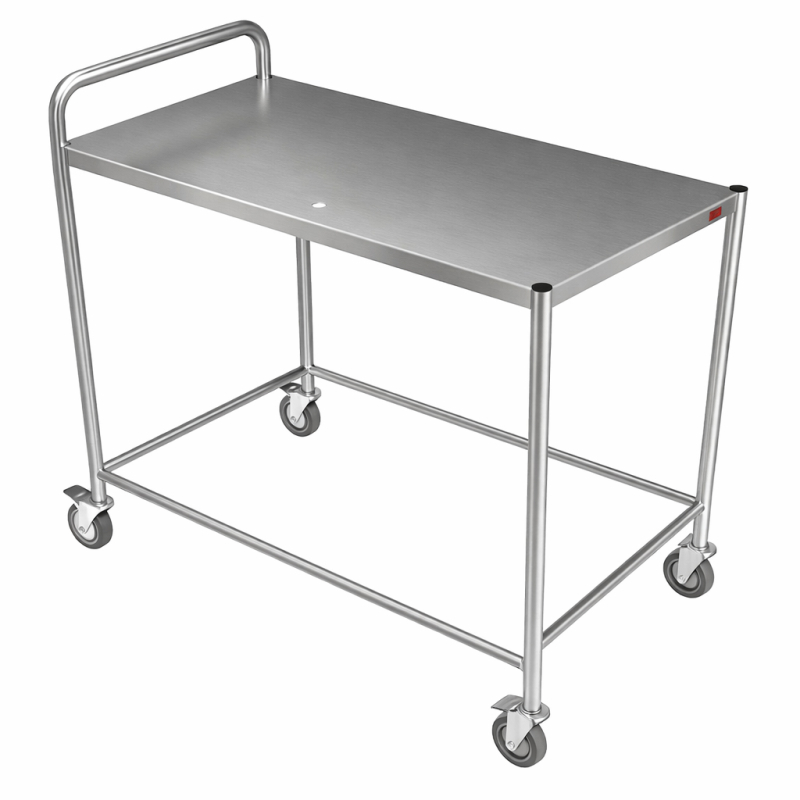 Carro bandeja com 1 plano, fabricado em aço inox com estrutura em cantoneira e tampos com superfície lisa em chapa de aço inox reforçado de fácil higienização. Equipado com empurrador frontal ergonômico e 4 rodízios de Ø 4”, sendo 2 fixos e 2 giratórios com freios para fácil movimentação em pisos, corredores e elevadores. Utilizado como carro auxiliar com 1 plano para transportar e acondicionar alimentos e utensílios nas áreas de higienização, preparo, distribuição e cocção em cozinhas de restaurantes, churrascarias, hotéis, hospitais, frigoríficos.