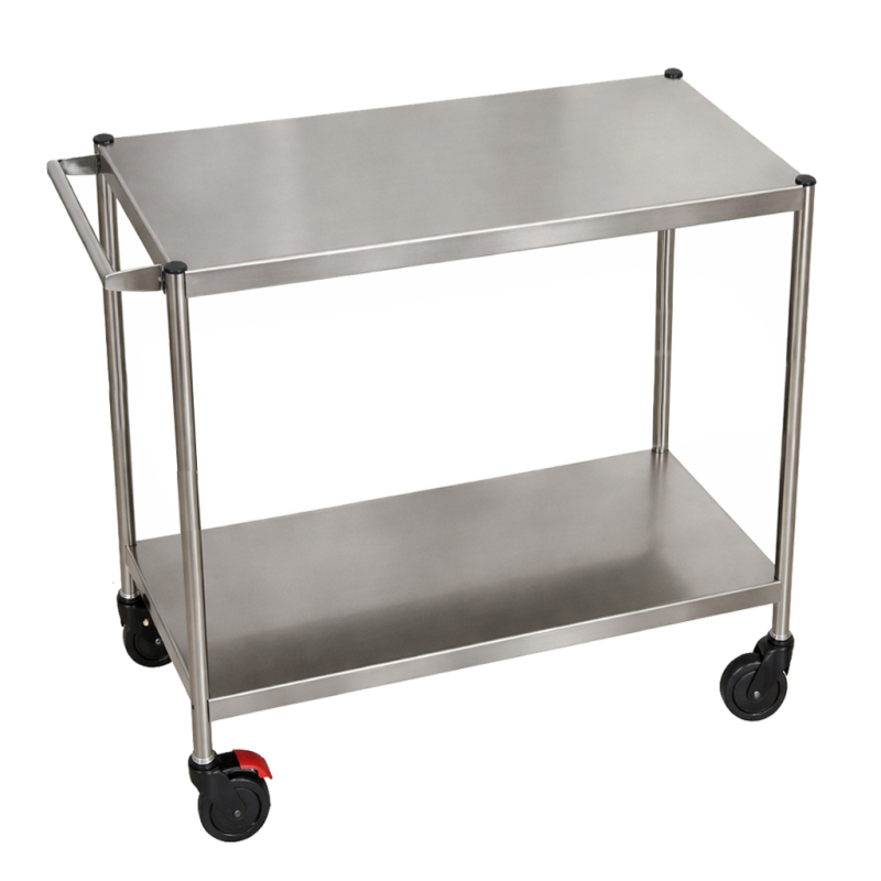 Carro bandeja com 2 planos, fabricado em aço inox com estrutura em cantoneira e tampos com superfície lisa em chapa de aço inox reforçado de fácil higienização. Equipado com empurrador frontal ergonômico e 4 rodízios de Ø 4”, sendo 2 fixos e 2 giratórios com freios para fácil movimentação em pisos, corredores e elevadores. Utilizado como carro auxiliar com 2 planos para transportar e acondicionar alimentos e utensílios nas áreas de higienização, preparo, distribuição e cocção em cozinhas de restaurantes, churrascarias, hotéis, hospitais, frigoríficos.