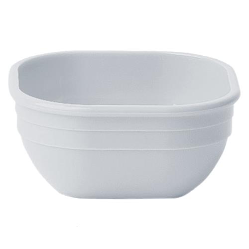 Tigela quadrada Cambro 10CW148 Camwear 280 ml, fabricada em policarbonato na cor branca, resistente a manchas, odores e arranhões, praticamente inquebrável e suporta (-40º a 99ºC), utilizada como tigela plástica Cambro para servir saladas, maças, caldos e sobremesas em escolas, refeitórios, creches, restaurantes, hotéis e hospitais; Preço de tigela Cambro direto do importador.