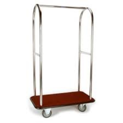 Carrinho de bagagem em Aço Inox para portaria e recepção de hotel; Fabricado em tubo de aço inox com acabamento de luxo polido e impecável; Cabideiro tubular superior; Assoalho acarpetado com proteção lateral emborrachada em todo contorno evitando danos em paredes de corredores, rodapés, soleiras, degraus e elevadores; Utilizado como carrinho de bagagem para transportar malas e bagagens de hóspedes em recepções e portarias de hotéis; resorts; clubes e condomínios; Preço de carinho para bagagem direto da fábrica.