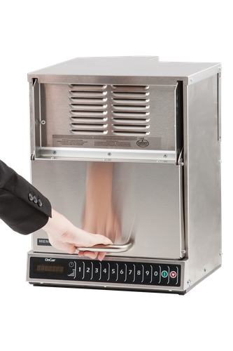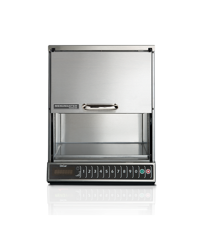 Forno micro-ondas Menumaster MOC24B para alto volume de operações, fabricado em aço inox com potência de 2400w distribuída por 2 magnétrons para um aquecimento ultra rápido é utilizado em lojas do Burguer King e Bob’s, para derreter o queijo dos lanches em 8 segundos.
