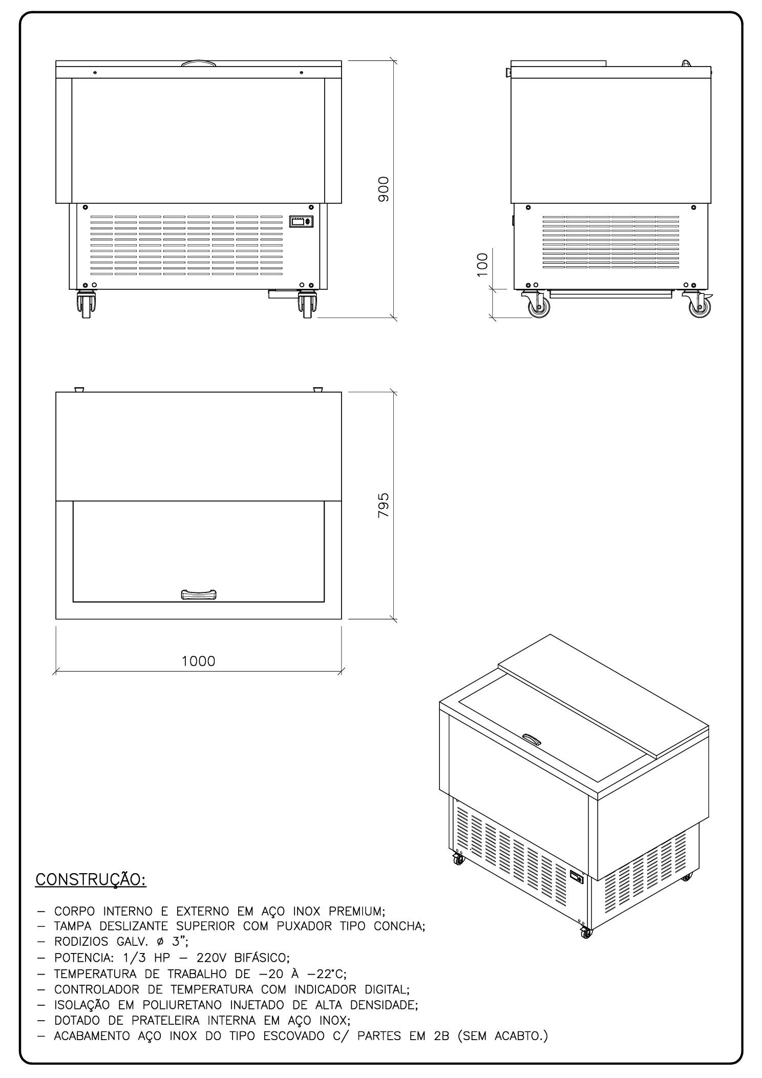 | Rodas | L110 x P70 x A52 | 0,4kw | 280 |