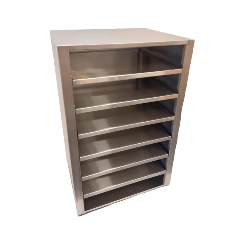 Aço Inox SAE 430 | Dimensões C600xL500xA1000 mm | 7 divisórias de 520×120 mm de altura entre elas
