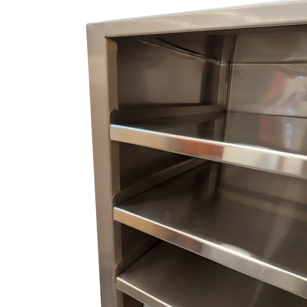 Aço Inox SAE 304 | Dimensões C600xL500xA1000 mm | 7 divisórias de 520×120 mm de altura entre elas