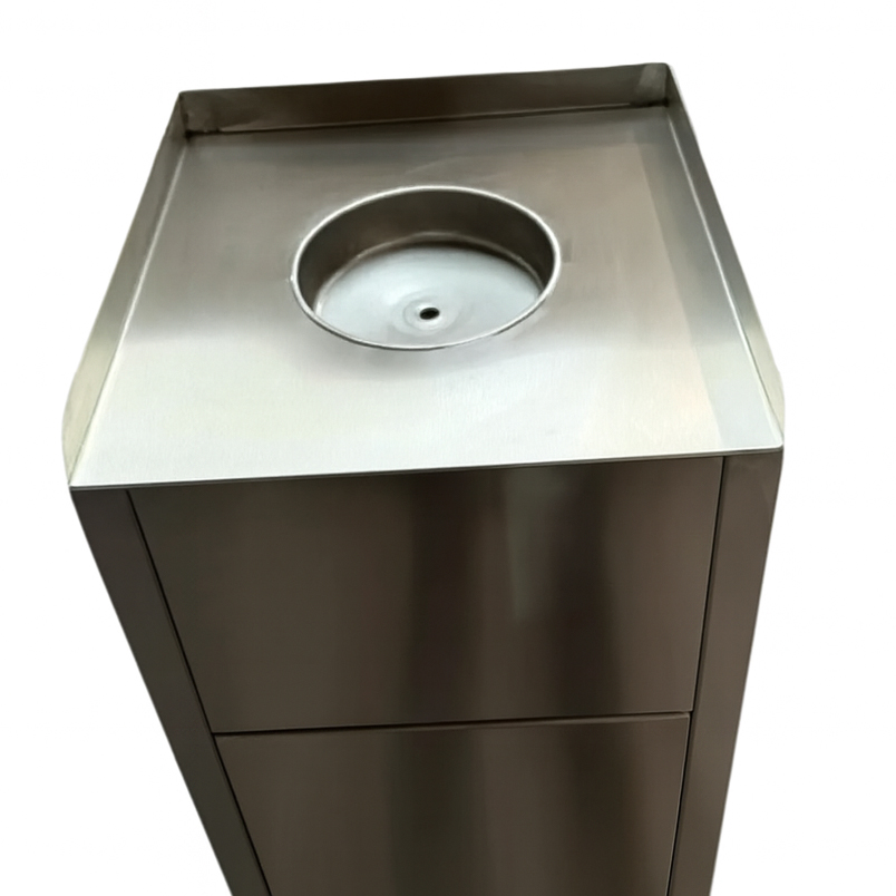 Lixeira fast food com porta-líquidos, fabricada em totalmente aço inox de alta resistência. Possui cuba em inox para o descarte prático e higiênico de líquidos, oferecendo um design moderno e acabamento elegante. Acompanha reservatório interno fechado em polietileno com capacidade para 60 Litros, ideal para armazenamento seguro de resíduos líquidos como água, sucos, chás e café provenientes da sobra de canecas ou copos descartáveis. O acesso ao reservatório plástico é feito por meio de porta frontal com sistema abre e fecha e travamento com fechadura. Utilizada como lixeira fast food e lixeira porta líquidos para o descarte de resíduos líquidos como café, sucos, chás e agua provenientes de canecas e copos descartáveis em refeitórios, praças de alimentação, restaurantes, lojas de fast food, cafés, padarias, lanchonetes, shoppings, hospitais e hotéis, garantindo organização, higiene e eficiência no fluxo de atendimento. Disponível nas versões com ou sem rodízios. Produto com preço direto de fábrica.