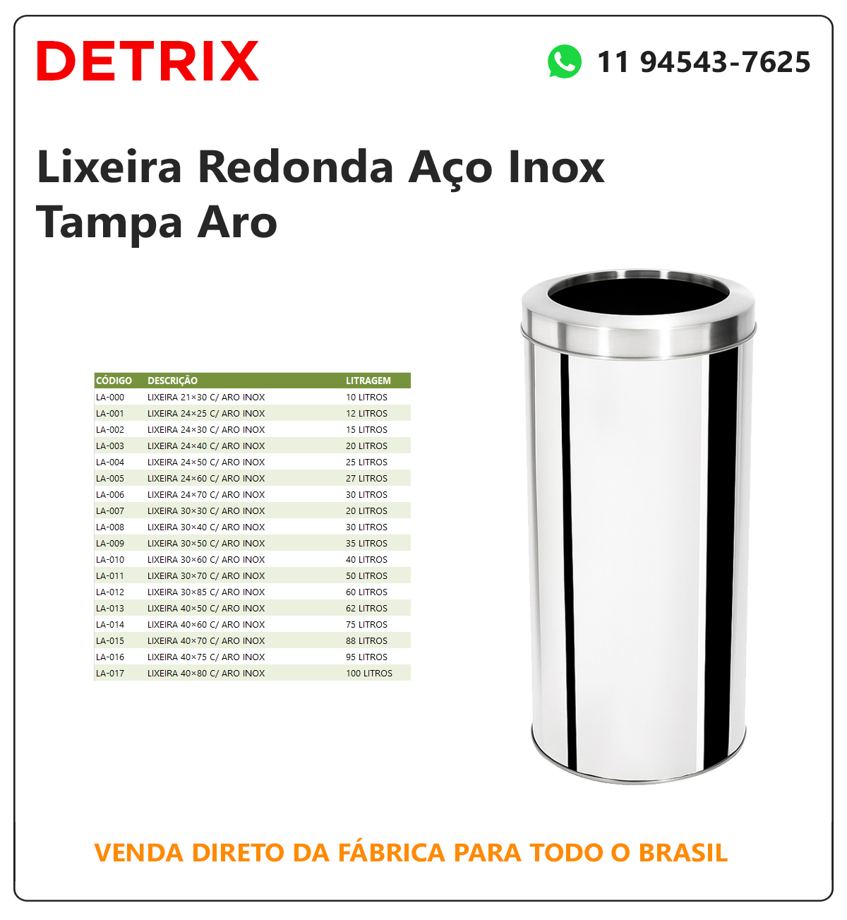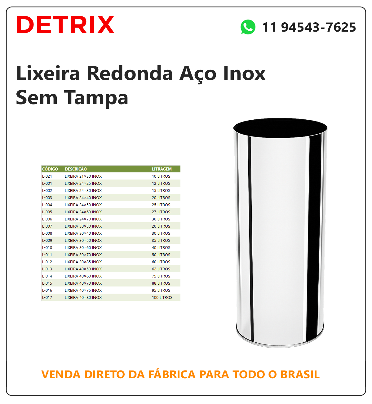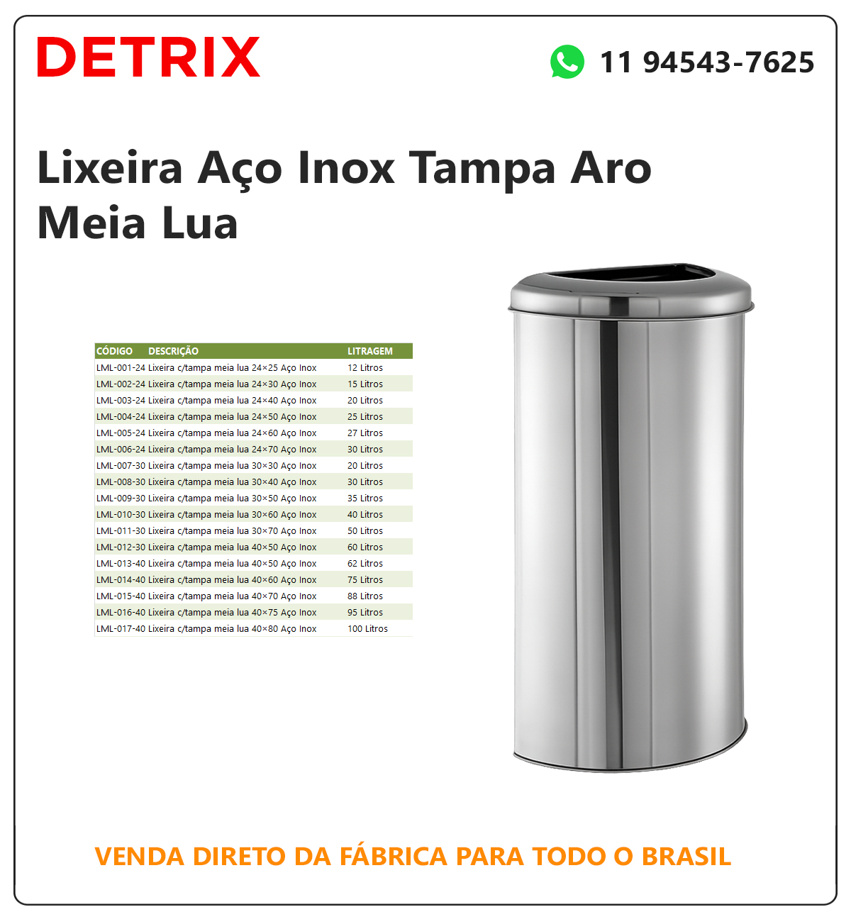 Lixeira de inox tampa basculante vai e vem, fabricada em aço inox com tampa basculante e encaixe para saco plástico; Utilizada como lixeira de inox tampa basculante e cesto de lixo de inox tampa vai vem em áreas comuns como banheiros, cozinhas, salas e escritórios, além de ambientes empresariais e locais de alta circulação, como escolas, hospitais, hotéis, restaurantes, mercados e shopping; Preço de lixeira de inox direto da fábrica.