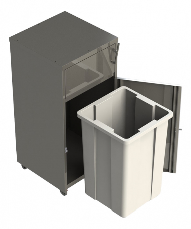 Lixeira porta detritos com pedal, fabricada em aço inox com tampa acionada por pedal evitando o contato com as mãos; Utilizada como carro porta detritos e lixeira para cozinha profissional em locais úmidos e molhados e nas áreas de preparo e higienização de alimentos em cozinhas de restaurantes, churrascarias, hotéis, hospitais, lojas de fast food e indústrias; Vedação contra dispersão de odores; Trava para saco de lixo; Puxador lateral; Preço de lixeira porta detritos direto da fábrica.