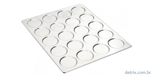 0318 Assadeira pão de hambúrguer 58x35 12 cavidades em alumínio. 6384 Assadeira pão de hambúrguer 58x70 16 cavidades em alumínio. 0376 Assadeira pão de hambúrguer 58x70 20 cavidades em alumínio.