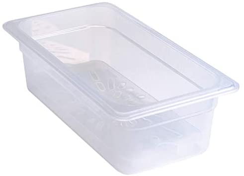 Fundo perfurado para GN1/3 de policarbonato, fabricado em policarbonato transparente com a superfície perfurada e suporta (-40º a 99ºC), utilizado como fundo escorredor na base interna de cubas GN para drenar vegetais, descongelar carnes e remover gorduras de proteínas em cozinhas de restaurantes e lojas de fast food; Preço de fundo escorredor direto do importador.