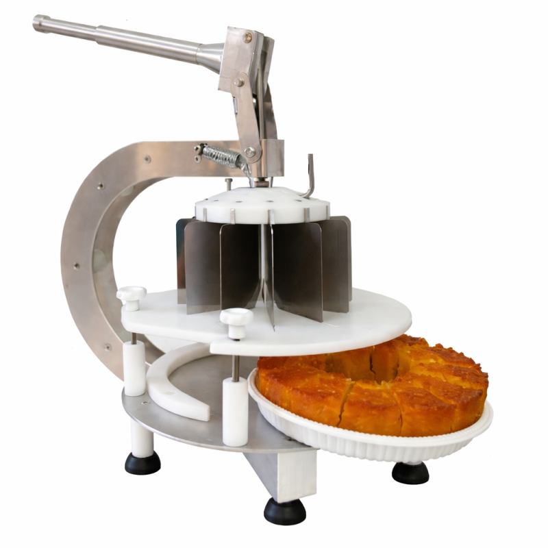 Cortador de bolos secos profissional, desenvolvido para agilizar a produção de forma eficiente e uniforme, garantindo cortes precisos e simétricos em bolos e secos, tortas e massas assadas. Sistema de corte com lâminas em inox, proporciona fatias uniformes, reduzindo perdas e assegurando um acabamento profissional. Fabricado com estrutura em aço inox, alumínio e polietileno, é de fácil higienização, atendendo às exigências de boas práticas de manipulação de alimentos em confeitarias, padarias, restaurantes, lojas conveniência, redes de fast food, buffets e cozinhas profissionais. Preço do cortador de bolos secos, direto do fabricante.