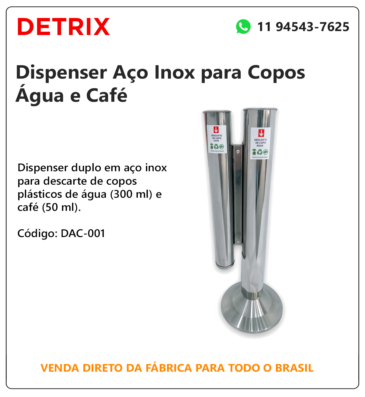 Dispenser Duplo Copos de Água e Café Aço Inox