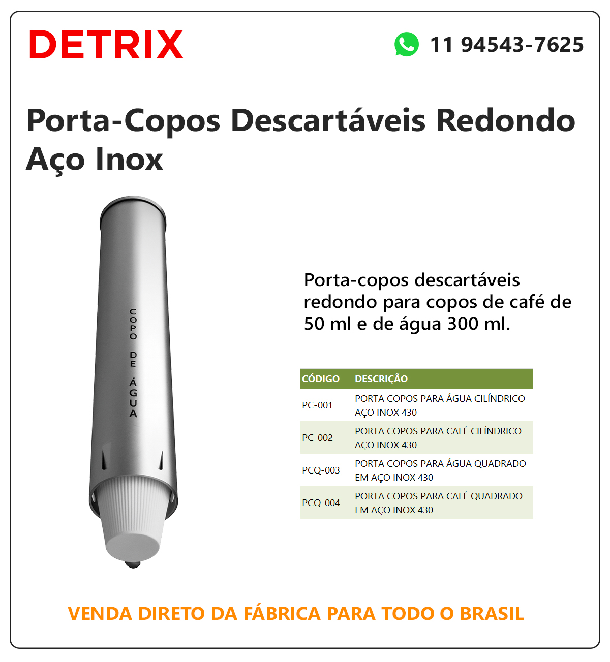 PC-002 - PORTA COPOS PARA AGUA CILÍNDRICO INOX 430